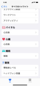 AppleWatch、iPhoneとデータ共有しているのでiPhoneのアプリ、「ヘルスケア」を開くと一日のわたしの状態がわかります。